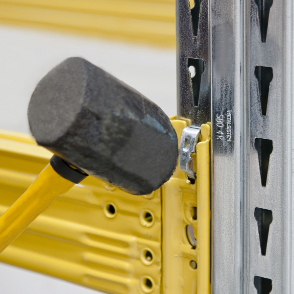 Le scaffalature sono dotate di spalle realizzate in acciaio zincato a caldo, altamente resistenti alla corrosione, garantendo la sua durabilità nel tempo. Maggiore visibilità e identificazione delle celle grazie alle travi di colore giallo per un’organizzazione semplice ed efficiente del magazzino