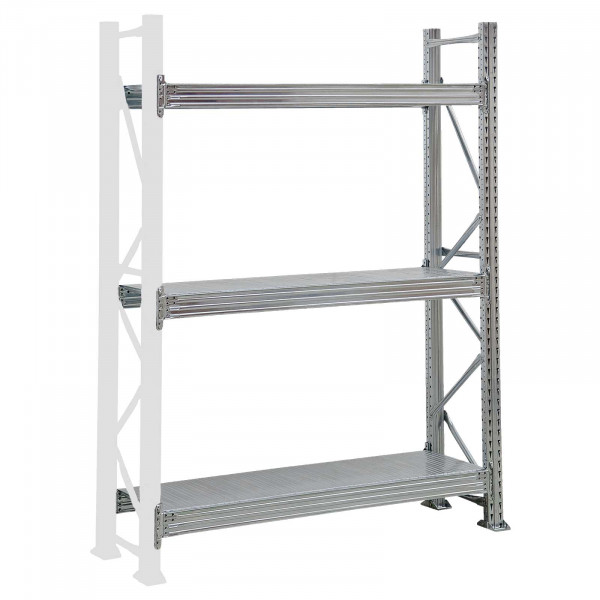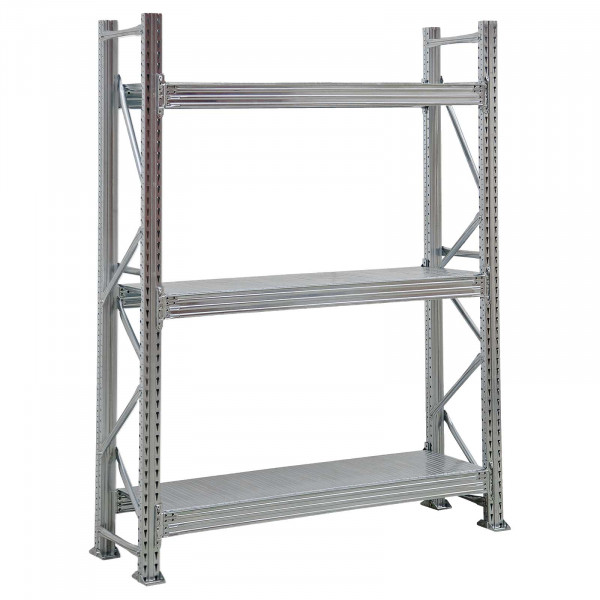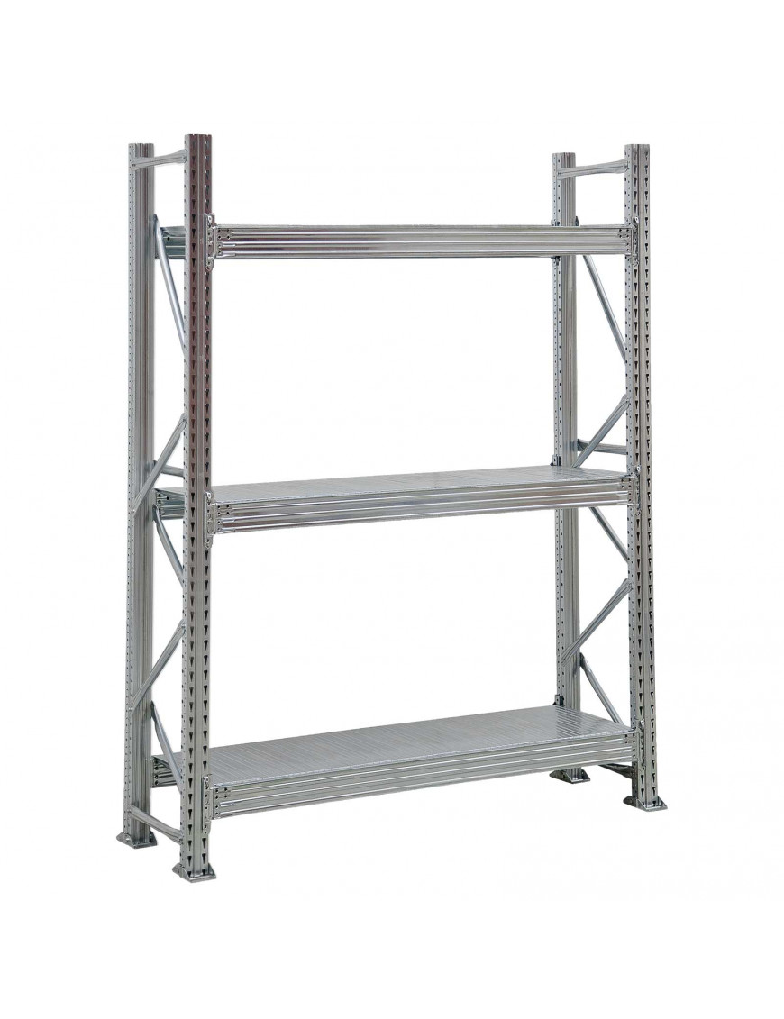 • Scaffale industriale dotato di pianetti in lamiera zincata con teste ribordate per rendere il piano uniforme e stabile