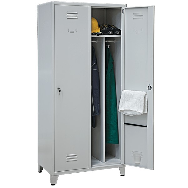 L'armadio spogliatoio sporco-pulito in lamiera di acciaio 7/10 viene utilizzato all'interno di aziende, scuole, palestre, piscine, magazzini e ovunque sia fondamentale la presenza di spogliatoi