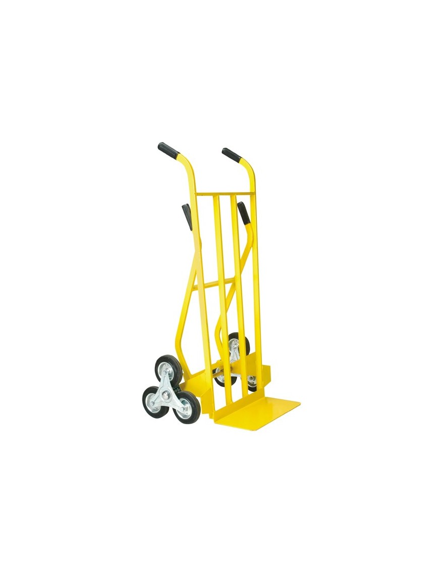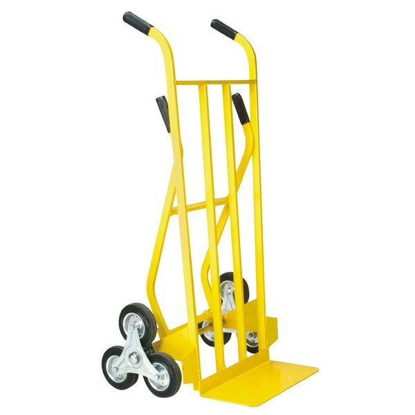 • Questo carrello è particolarmente indicato per il trasporto di colli pesanti, grazie alla sua struttura robusta e resistente. Inoltre, grazie alla particolare forma delle ruote a stella può essere utilizzato in tutti gli ambienti che presentano rampe di scale in mancanza di ascensori o montacarichi