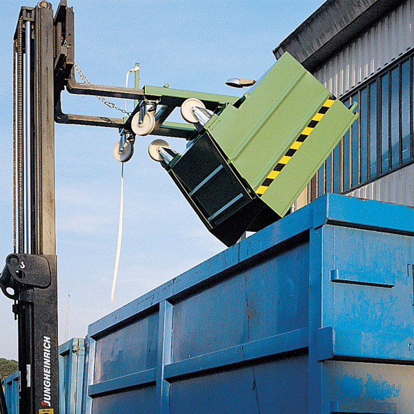Contenitori porta rottami inforcabili e ribaltabili, soluzione ideale per la raccolta, il trasporto e lo scarico di rifiuti industriali, trucioli, sfridi, rottami e raccolta indifferenziata in modo facile e sicuro