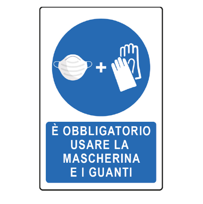 Segnaletica adesiva di sicurezza Covid - Lunghezza -cm- 20 - Larghezza -cm- 30 - Scritta obbligo mascherina e guanti -