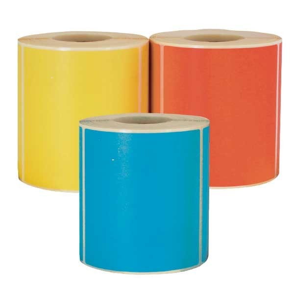 Etichette colorate compatibili con tutte le stampanti industriali che utilizzano la tecnologia di stampa a trasferimento termico. Stampabili con il ribbon in cera.