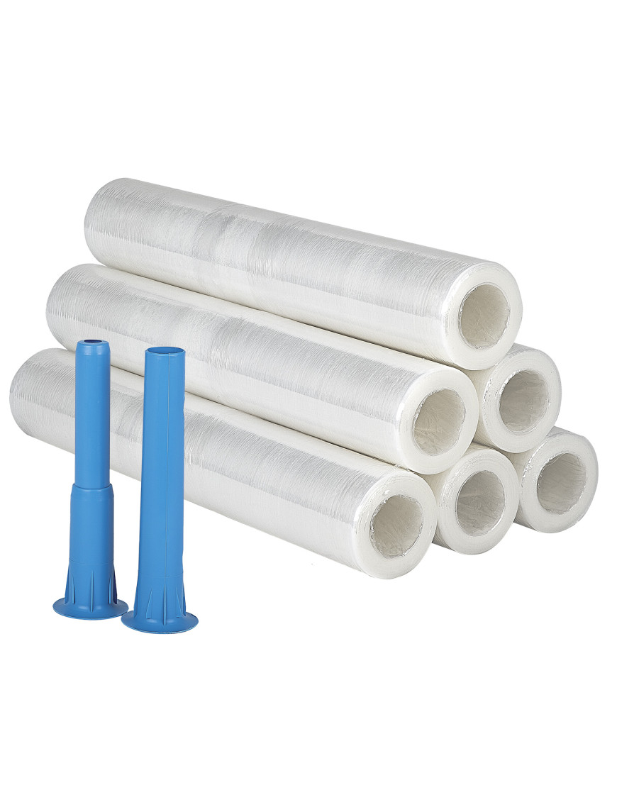 • 6 bobine di film estensibile trasparente per uso manuale senza mandrino - cod. MAS1550