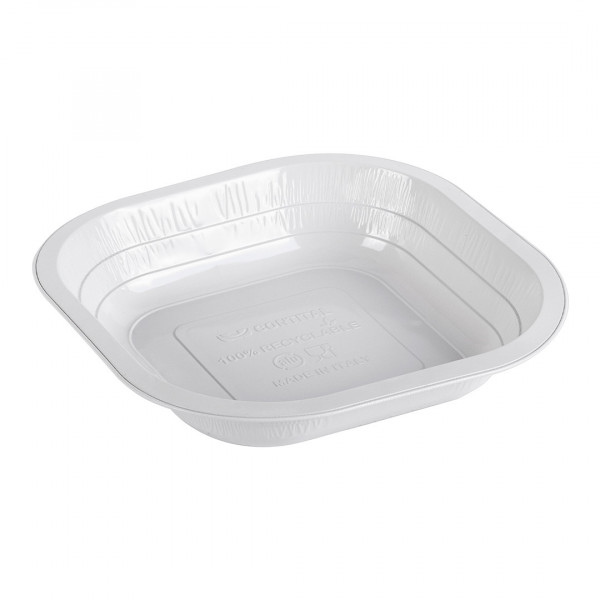 Piatti monouso in alluminio, ideali nel settore ristorativo, catering, mense, strutture alberghiere per mantenere caldi gli alimenti e consegnarli in sicurezza grazie agli appositi coperchi oppure saldabili con appositi film tradizionali e bio.