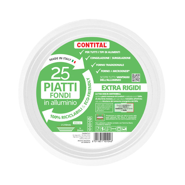 Piatti monouso in alluminio, ideali nel settore ristorativo, catering, mense, strutture alberghiere per mantenere caldi gli alimenti e consegnarli in sicurezza grazie agli appositi coperchi oppure saldabili con appositi film tradizionali e bio.
