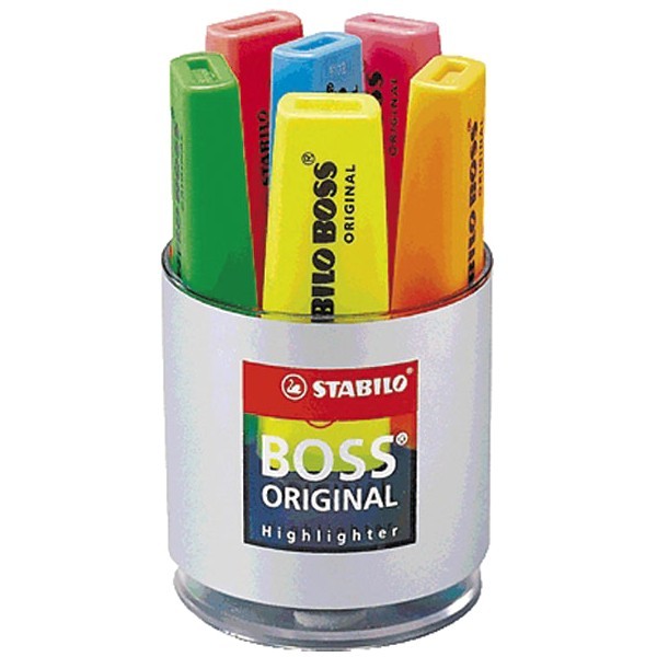 • Gli evidenziatori STABILO® BOSS® dai colori brillanti permettono di contrassegnare e sottolineare il testo senza impatto sulla leggibilità