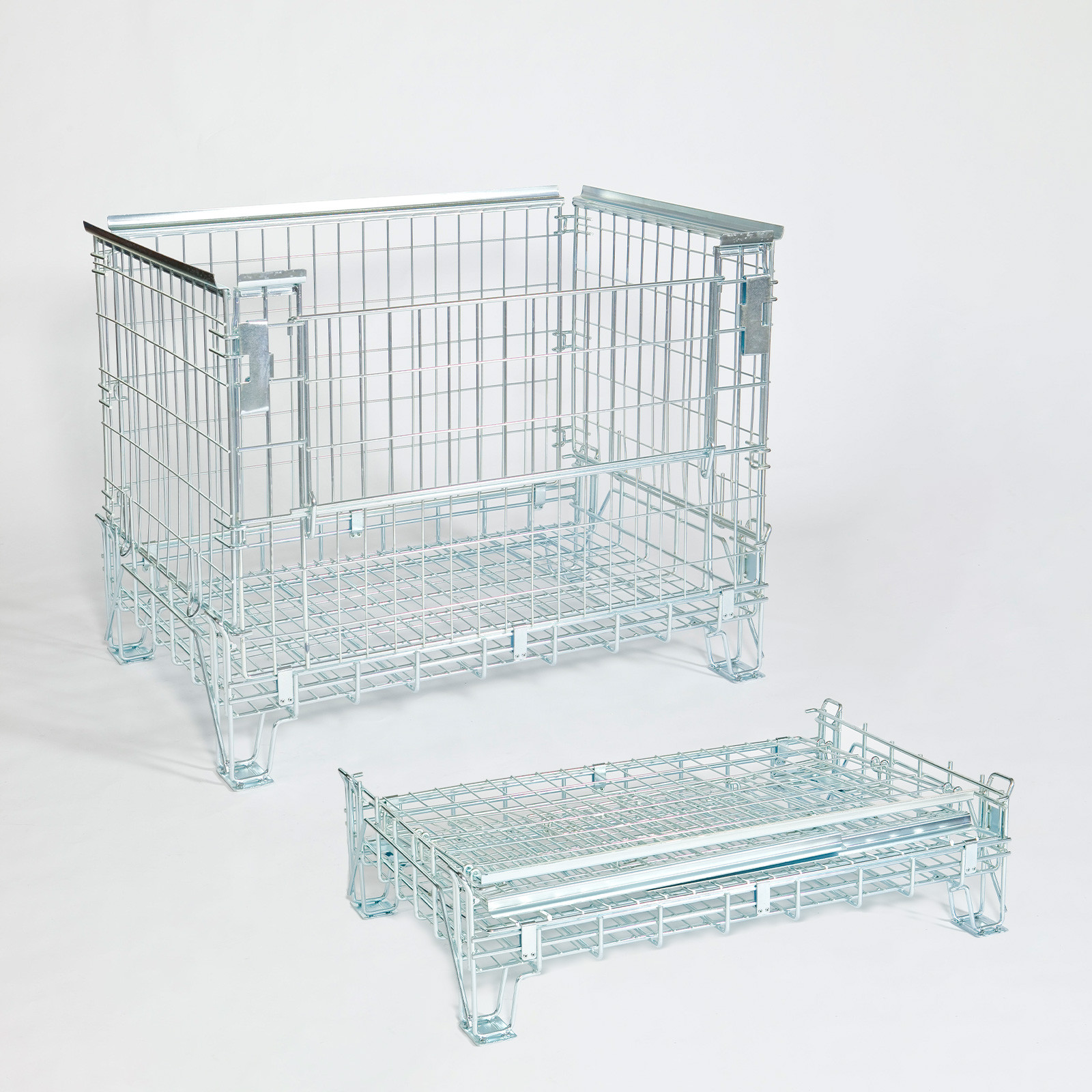 • I contenitori in filo metallico sono multiuso, ideali per il trasporto e lo stoccaggio di diversi tipi di materiali. I contenitori sono pieghevoli per un notevole risparmio di spazio quando sono chiusi, sono inforcabili e impilabili uno sull’altro