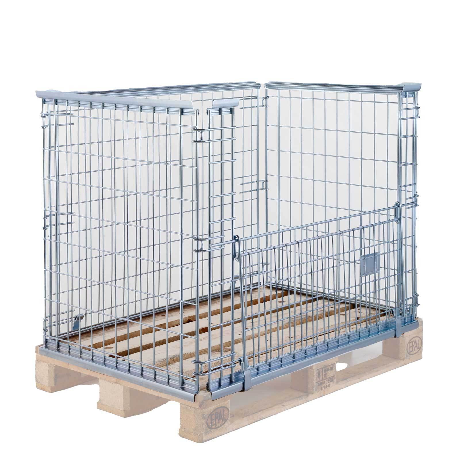 • Hanno la parete anteriore apribile a metà, possono essere dotati di piedi auto portanti, ruote o agganci nei quattro angoli compatibili a qualsiasi pallet (pallet non incluso)
