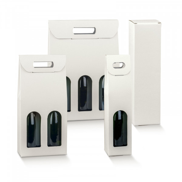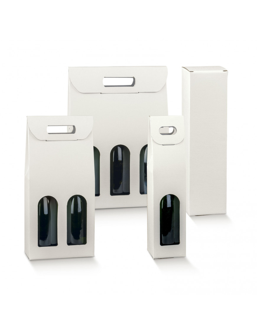 Scatole per bottiglie in cartone accoppiato colore bianco per confezionare e trasportare bottiglie di vari formati. Ideali per contenere bottiglie renane, bordolesi e borgognotte in posizione verticale