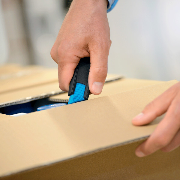 Questo taglierino antinfortunistico è un cutter professionale adatto al taglio di diversi materiali come cartone, estensibile, nastro adesivo e sacchi contenente merce