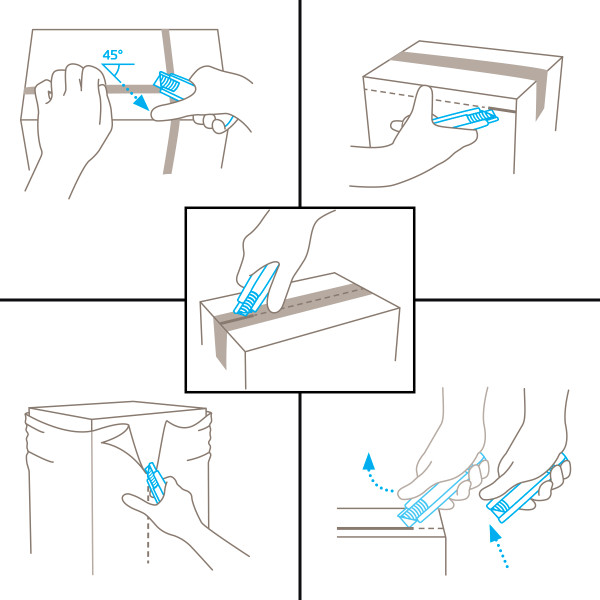 Il taglierino di sicurezza dispone di una lama con due lati affilati e quattro taglienti. Questo permetterà di quadruplicare il suo tempo di utilizzo grazie alla possibilità di ruotare e voltare la lama