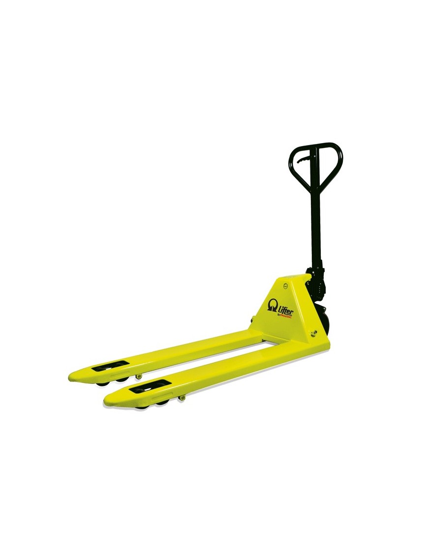 Transpallet con portata massima di 2500 kg e verniciatura con polvere di poliestere a 250°C che garantisce la massima resistenza all'usura e agli agenti atmosferici