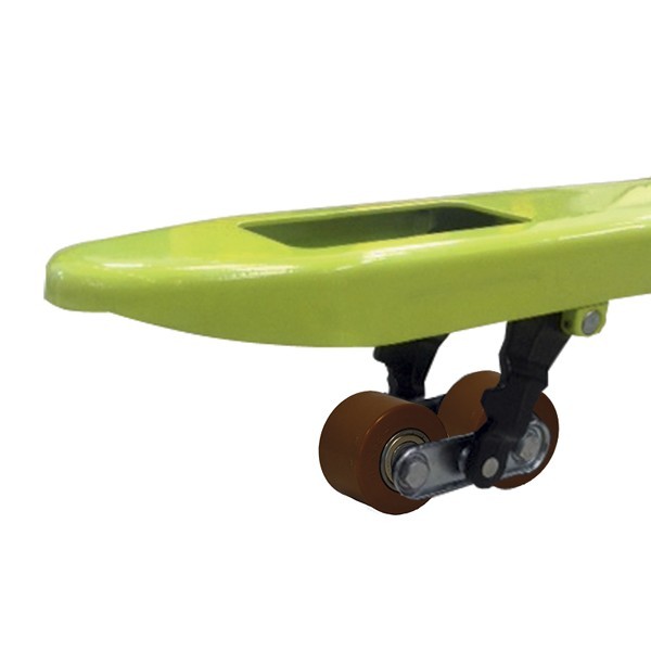 Le ruote in poliuretano del transpallet sono progettate per essere estremamente resistenti all'uso intensivo e per assorbire efficacemente eventuali urti, risultando silenziose e scorrevoli